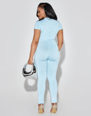 Add some playful, sexy vibes to your wardrobe with our Baby Bluez fitted jumpsuit. Perfect for a night out or a special occasion, this jumpsuit will hug your curves in all the right places and make you feel confident and irresistible! Say hello to your new go-to outfit.