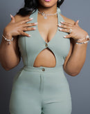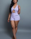 Serve body and soft glam in the Cut Out Romper — the ultimate blend of sexy and sophisticated. Featuring a sultry halter neckline with a daring front cutout and a curve-enhancing silhouette, this romper is made for rooftop nights, baecations, and being that girl.