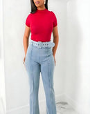 - HIGH WAIST WASHED DENIM STRETCH PANTS
